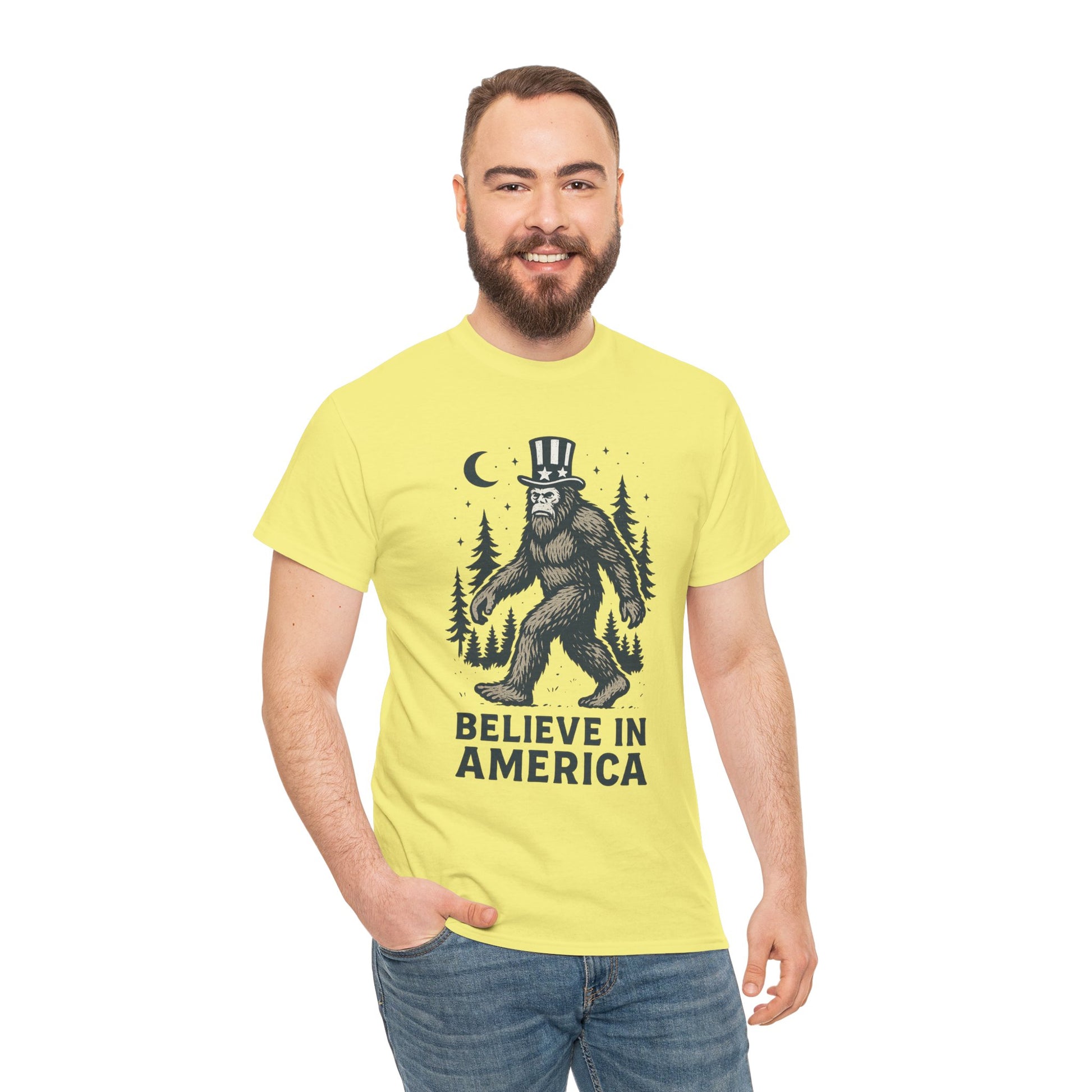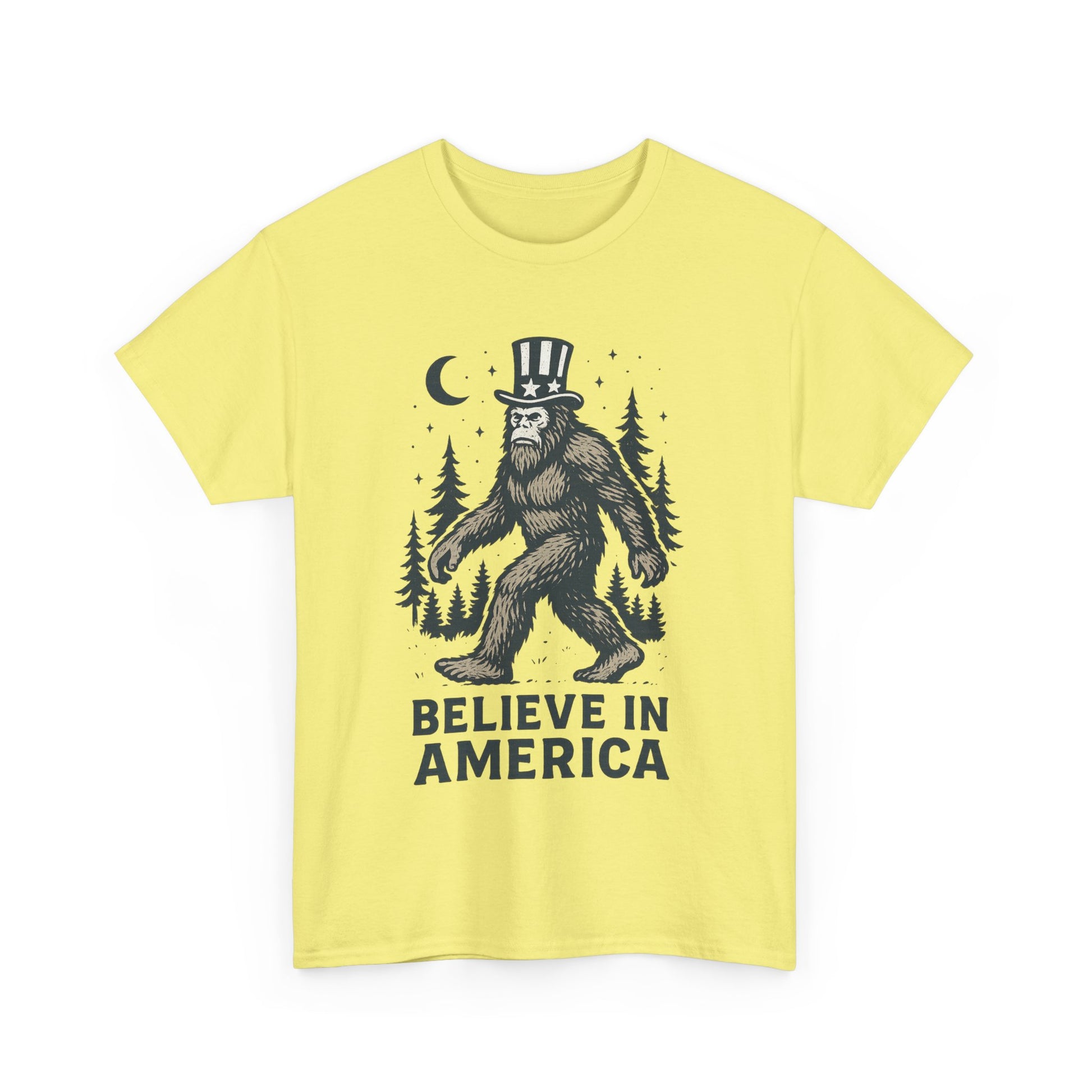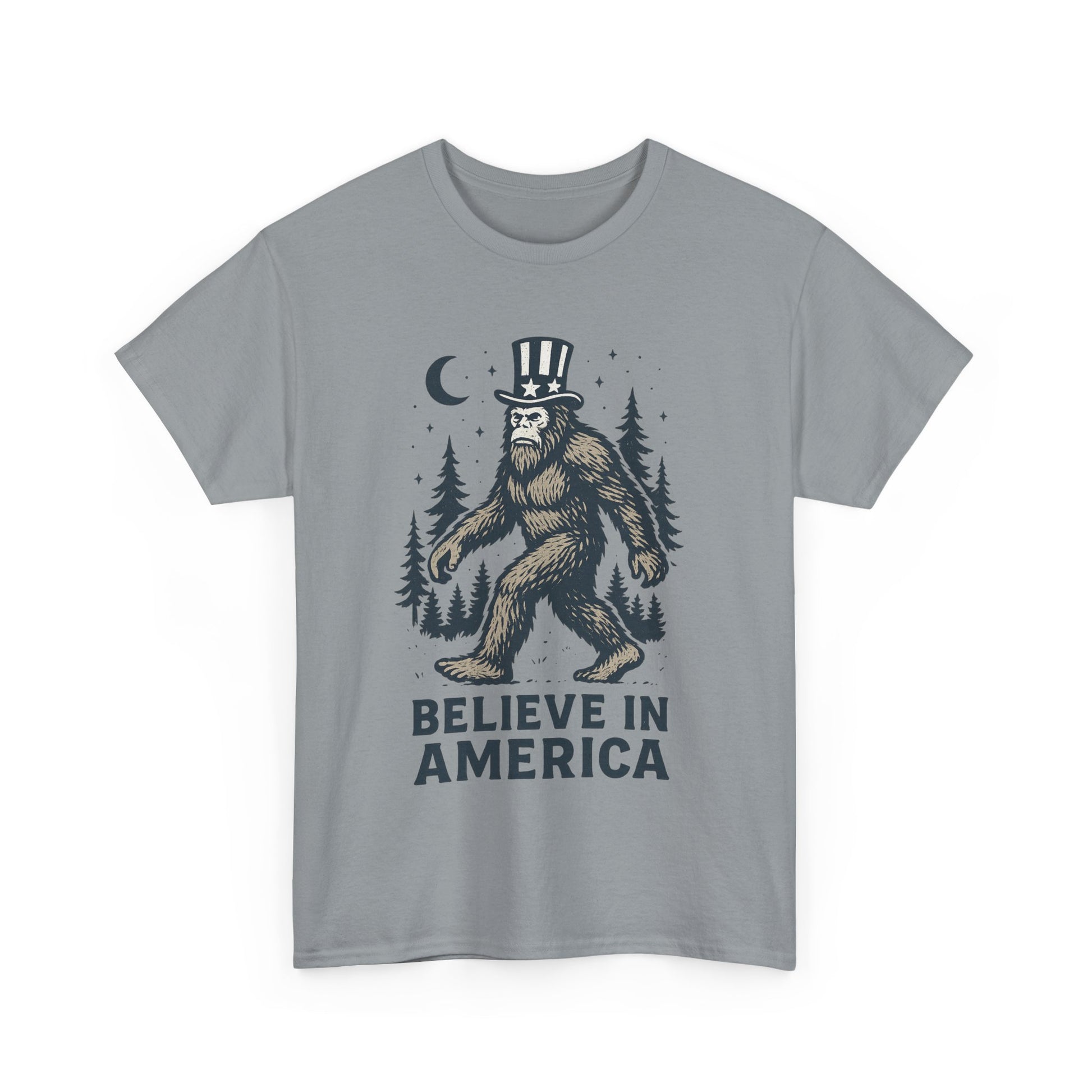 Believe in America Bigfoot T-Shirt – Patriotic Sasquatch Graphic Tee