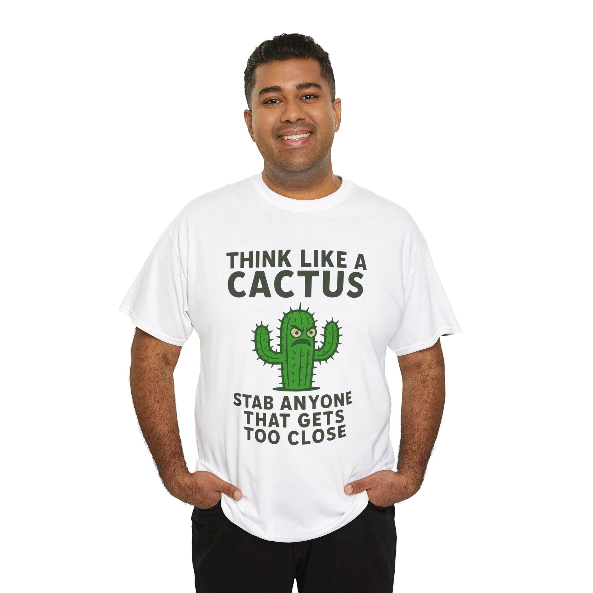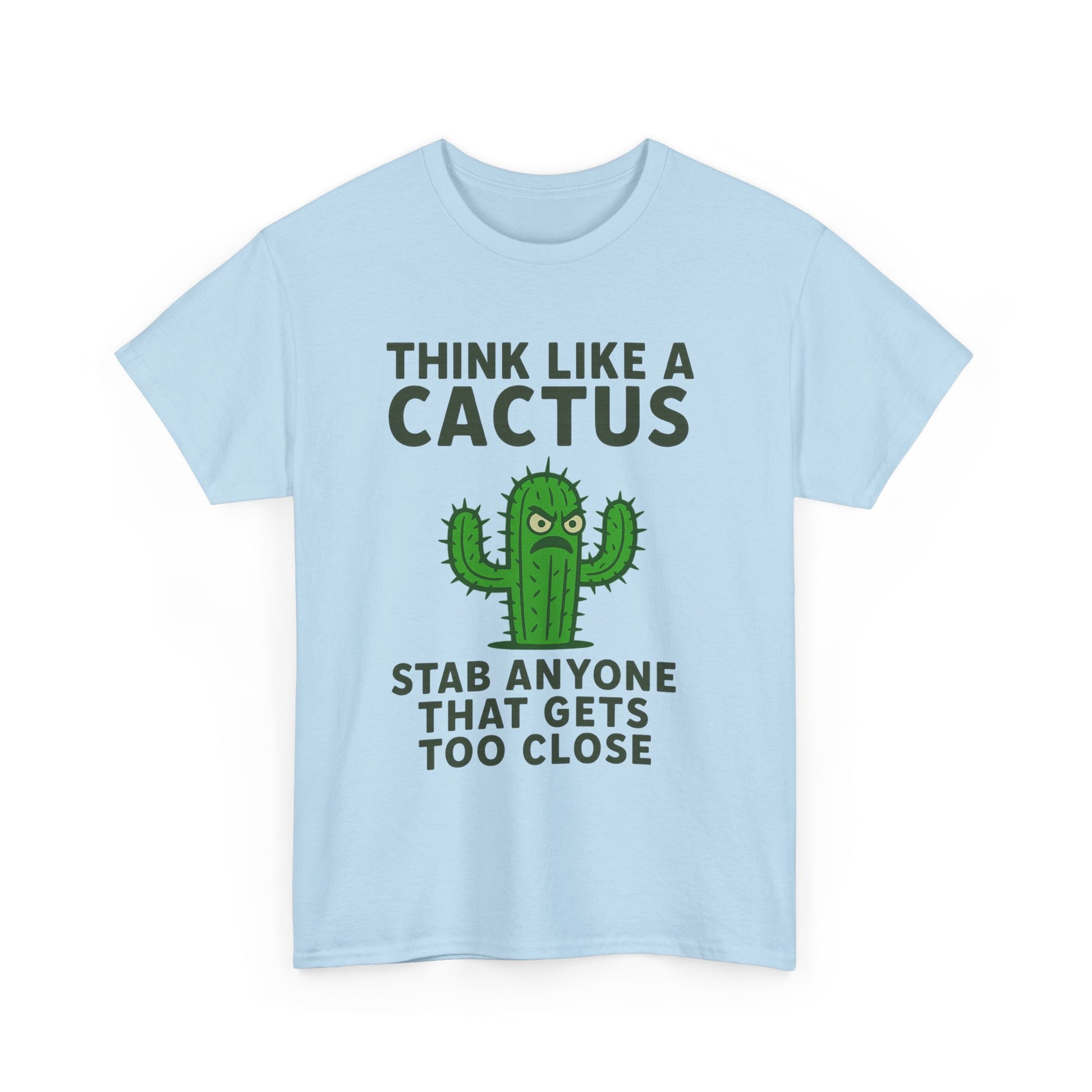 funny cactus shirt, sarcastic t-shirt, novelty plant humor shirt, angry cactus graphic tee, think like a cactus shirt, personal space joke shirt, quirky cactus design, desert humor tee, stabby cactus shirt, edgy novelty shirt, funny cactus gift idea
